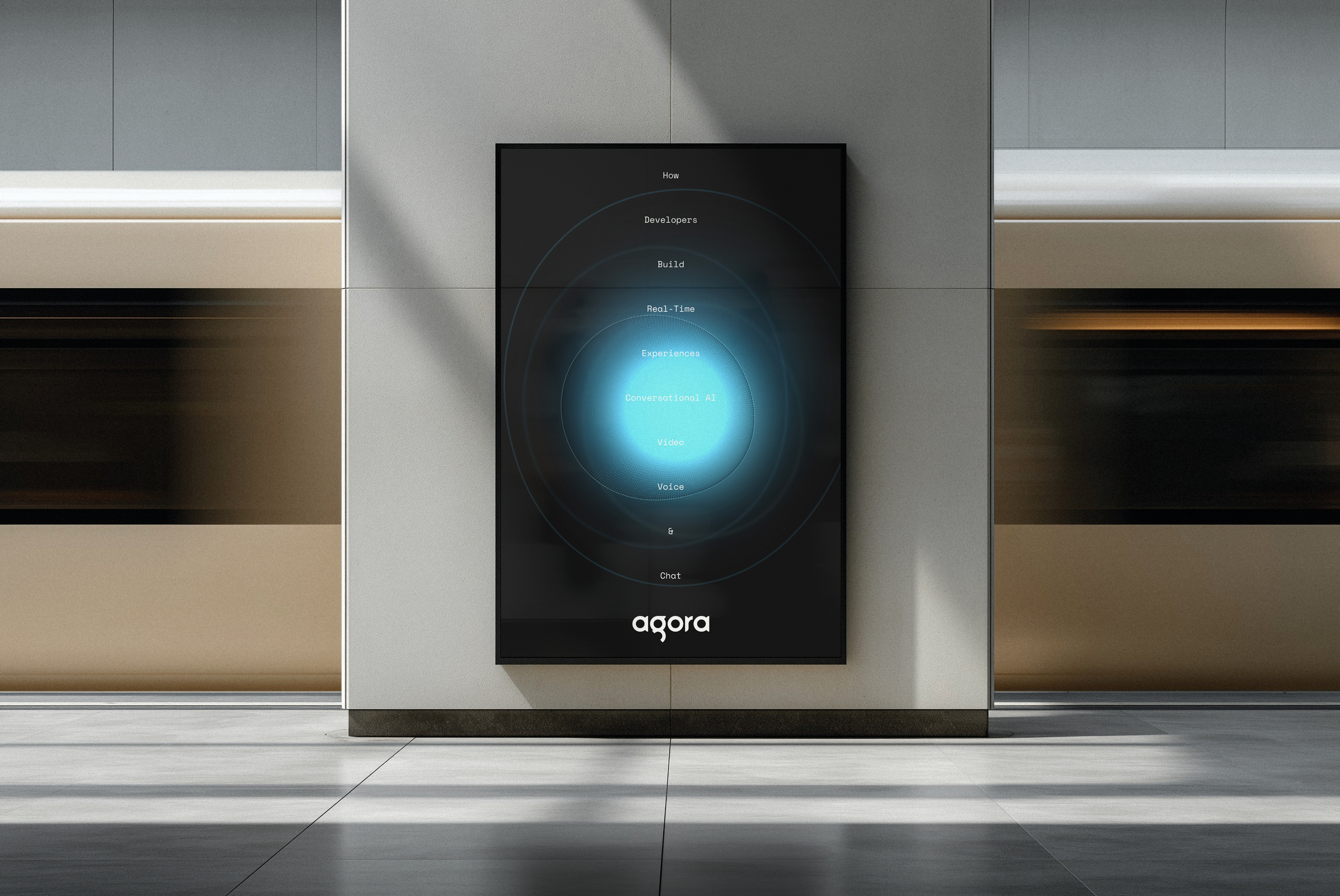 Agora came to us looking for a unified design system and visual language that could tie together their many products and offerings. They needed something that felt unmistakably Agora, while still flexible enough to move across a wide range of touchpoints. Our answer was the Aura, a visual connective thread that brings consistency and personality to their entire ecosystem. Alongside the Aura, we also solidified a typographic system and iconography library to help hold the brand together across every touchpoint and expression.